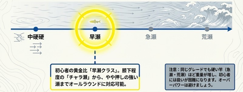 初心者におすすめなのは、オールラウンドに使える硬さ「早瀬クラス」です。